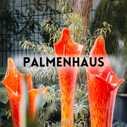 Erleben Sie das Palmenhaus, das ganzjährig geöffnet ist und tauchen Sie ein in die wundersame Welt der Pflanzen. In diesem üppigen Dschungel sind auch gläserne Überreste vergangener Epochen versteckt. Vielleicht gelingt es Ihnen, alle Geheimnisse dieser mysteriösen Kreationen zu enthüllen?